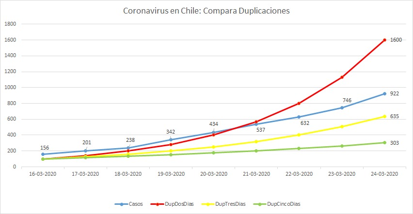 Lee también: Riesgo de contagio y falta de insumos: El escenario que espera a 3.600 internos de Medicina que enfrentarán el COVID-19“Los últimos días, Chile ha crecido en una tasa lineal y, si la información que entregan las autoridades es correcta, apegada a la realidad, el promedio de crecimiento local en estos últimos 5 días sería del 22%, lo que reitero, de ser real, es bueno, ya que, con medidas más restrictivas, como la cuarentena total, se podría aumentar aún más el tiempo de duplicación que según estos indicadores hoy es cada 3,5 días”, remata el profesor con un dejo de esperanza.