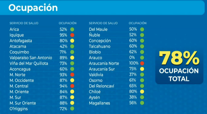 Lee también: Hasta por 12 horas: Pacientes con síntomas de COVID-19 tuvieron que esperar en ambulancias en el Hospital El PinoEl subsecretario detalló el escenario que enfrentan los servicios de salud de todo el país es de un 78% de ocupación total, donde 4 servicios de 3 regiones ya superan el 90% de su capacidad.