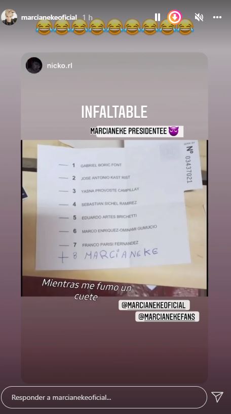 Un usuario de Instagram viralizó la papeleta con el nombre de Marcianeke. El cual fue marcado, simulando así ser su opción a La Moneda.