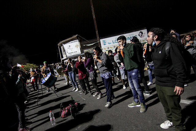 Manifestantes cantan "El baile de los que sobran" en la Plaza de Los Héroes en Rancagua