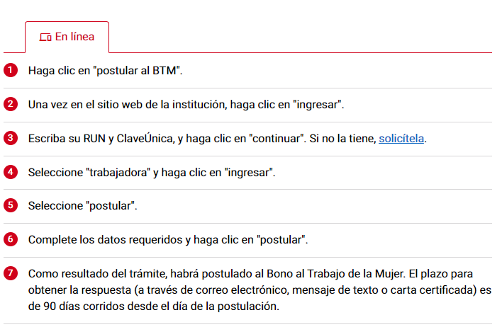 Para aquellas mujeres que no han postulado y necesiten hacerlo, deben realizarlo en línea. Haz click aquí para ingresar al sitio.