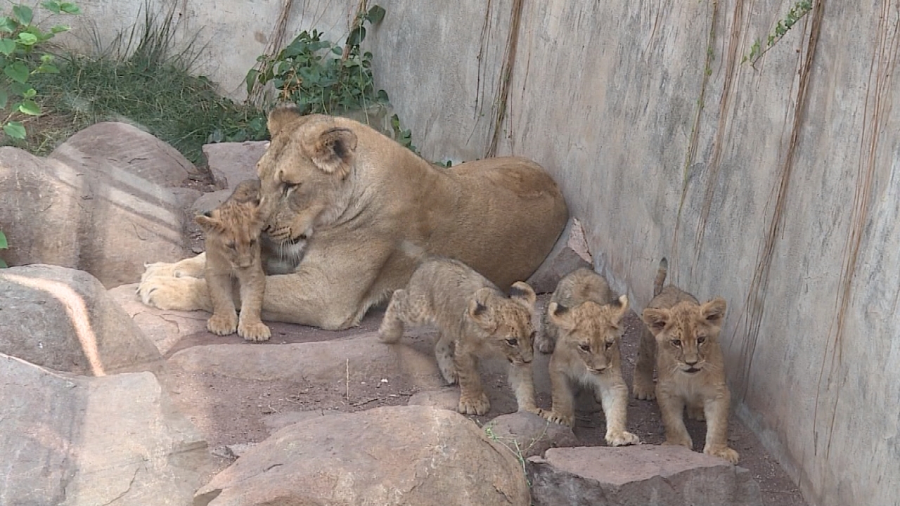 Las cuatro crías de león fueron presentadas este viernes luego que pasaran un periodo de adaptación junto a su madre, Rita, desde que nacieron en noviembre pasado.