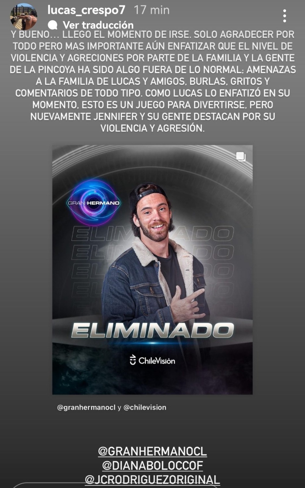 cuenta oficial de Lucas Crespo en Instagram desató la polémica al lanzar un