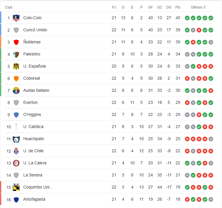 Por su parte, Provincial Curicó Unido está viviendo un gran momento, ya que suma 39 unidades y se ubica en el segundo lugar del Campeonato Chileno, sólo superado por Colo Colo (45 pts).