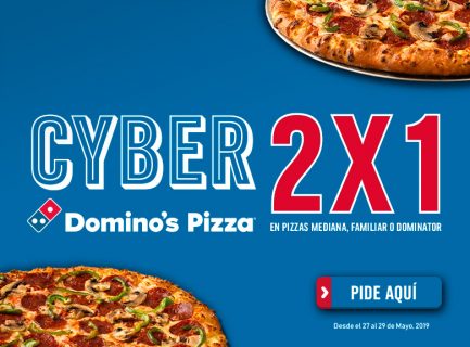 La cadena Domino's Pizza tiene 2x1 en los pedidos de pizzas mediana, familiar y dominator que se hagan a través de su sitio web, tanto para reparto a domicilio y retiro en local.