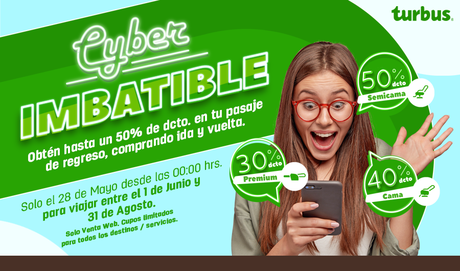 Solo por hoy 28 de mayo, TurBus está ofreciendo descuentos que van desde un 30% al 50% en sus pasajes de regreso desde todos los destinos, para que viajes entre el 1 de junio y el 31 de agosto.