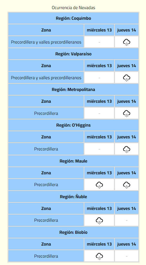 En ese sentido, desde la Dirección Meteorológica Chile (DMC) emitieron un aviso meteorológico por "nevadas normales a moderadas" en diferentes regiones a lo largo de Chile.
