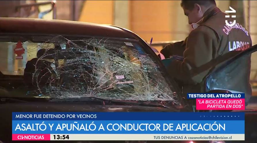Un joven delincuente de 16 años asaltó y apuñaló al conductor de una aplicación de transportes, para luego escapar con el automóvil que había solicitado como servicio por teléfono, vehículo con el que atropelló a un hombre que circulaba en bicicleta en la comuna de Maipú.
