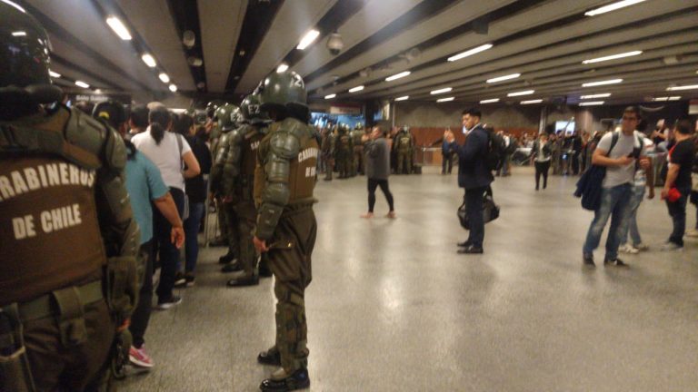 Sin embargo, en esta estación de la Línea 1, los carabineros decidieron hacerlo con las personas aun dentro, sin esperar que éstas salieran, como sucedió en otros lugares.