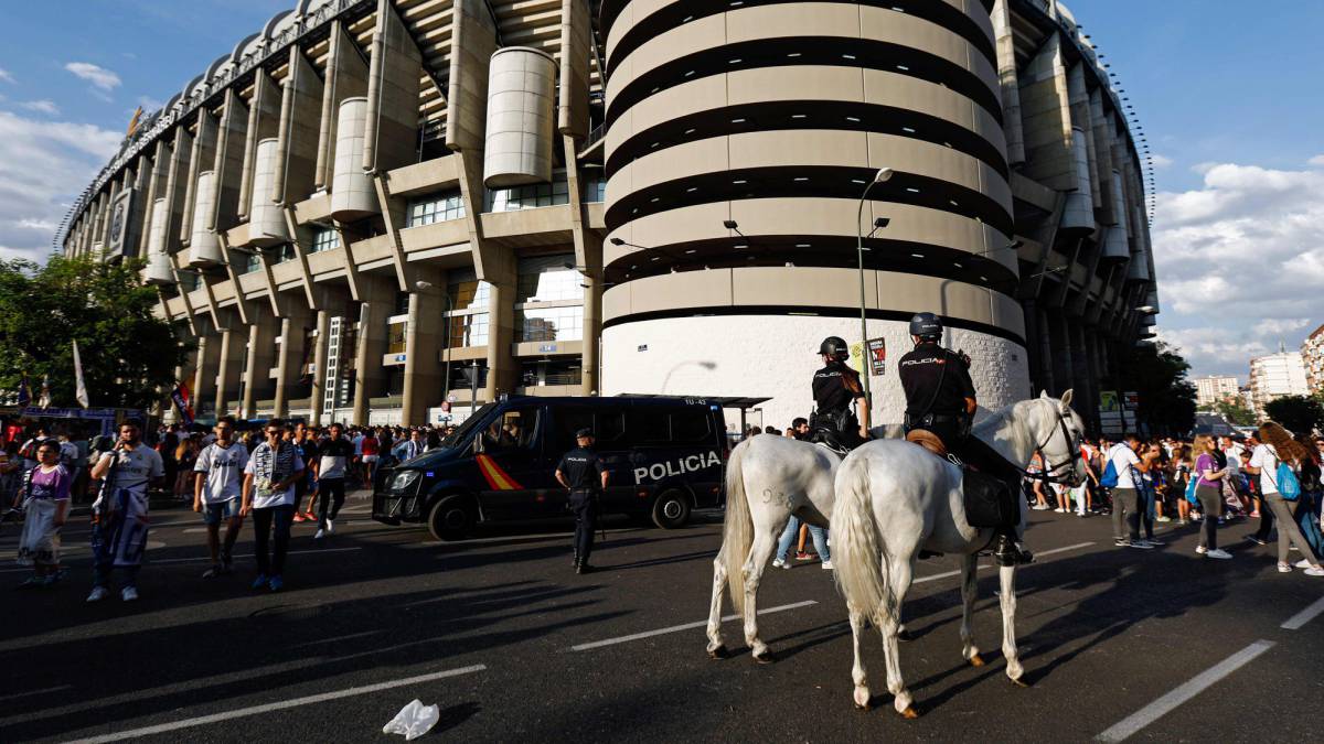 Desde el jueves 6, grupos de cuatro policías rodean el estadio del Real Madrid levantando alcantarillas y revisando con una linterna si todo está bien bajo tierra. Otros dos, en tanto, observan el comportamiento de la gente que camina por la zona, exigiéndole documentación a todo aquel que quiera grabar o fotografiar el operativo. Otros efectivos, en tanto revisan botes de basura e incluso quitan algunos para evitar que alguien meta allí algún explosivo. La brigada antiexplosivos trabaja sin descanso y también lo hará el día del partido, donde el Bernabéu será examinado con lupa: cada butaca será revisada al detalle por personas y por perros entrenados para buscar explosivos.