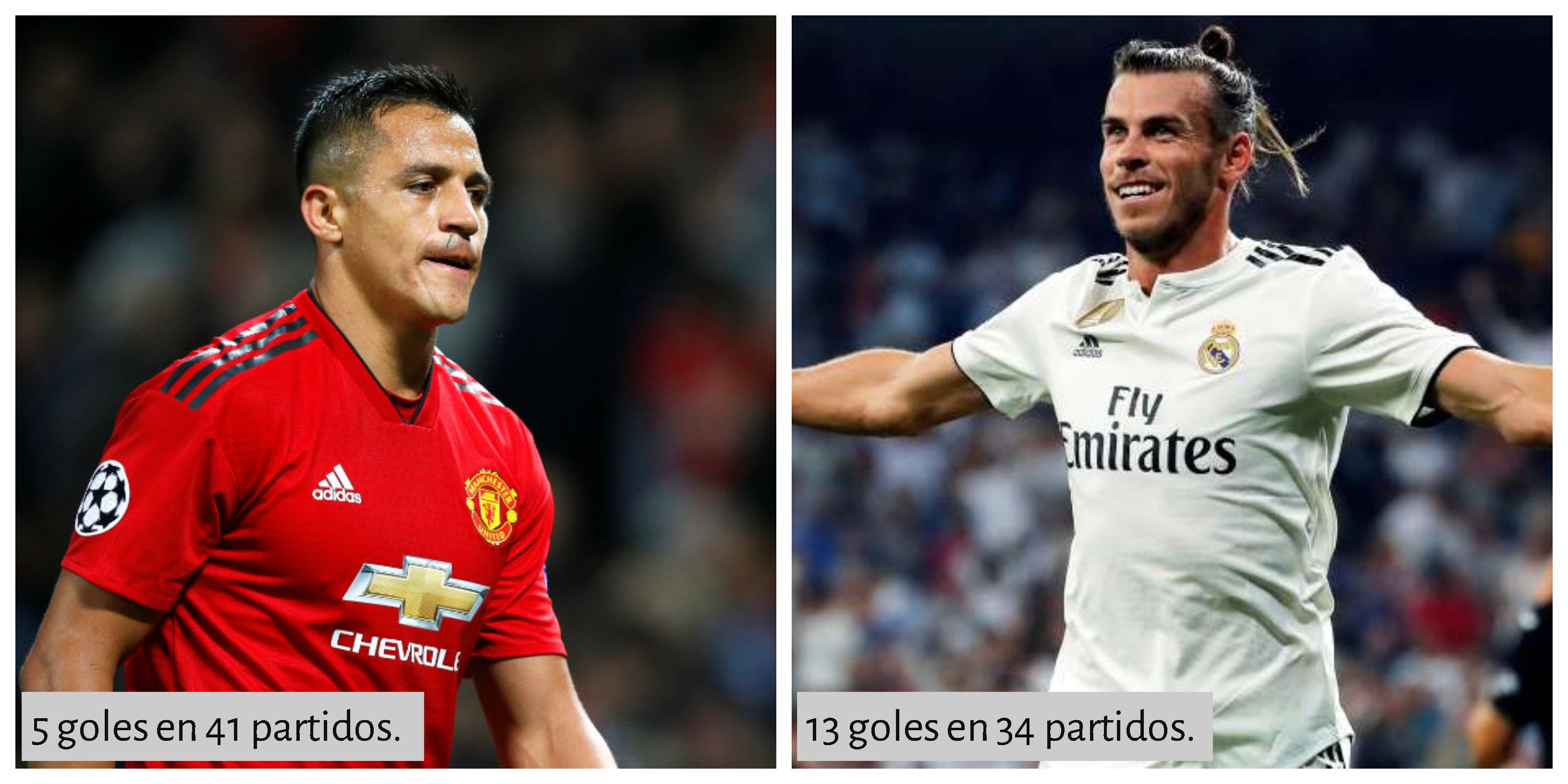 Esta temporada Alexis Sánchez ha marcado por el United 5 goles en 41 partidos, mientras que Gareth Bale lleva 13 tantos en 34 apariciones. El chileno ha dado 9 asistencias, el delantero galés 5. En tanto que el tocopillano a visto 511 minutos, mientras que Bale sólo 462.