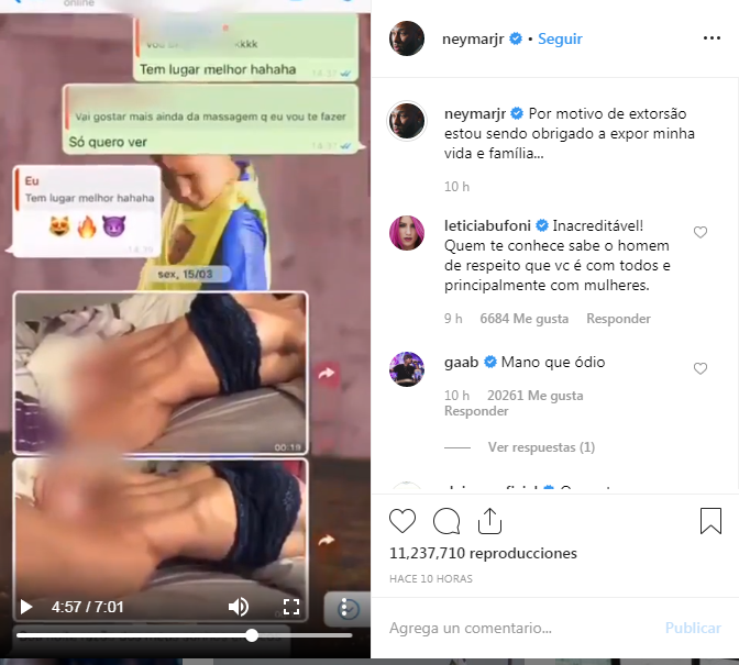 El círculo cercano del jugador se excusó de conocer antecedentes de la denuncia. Sin embargo, Neymar, quiso salir al paso publicando un video de 7 minutos en su cuenta personal de Instagram, en la que asegura que cayó "en una trampa".