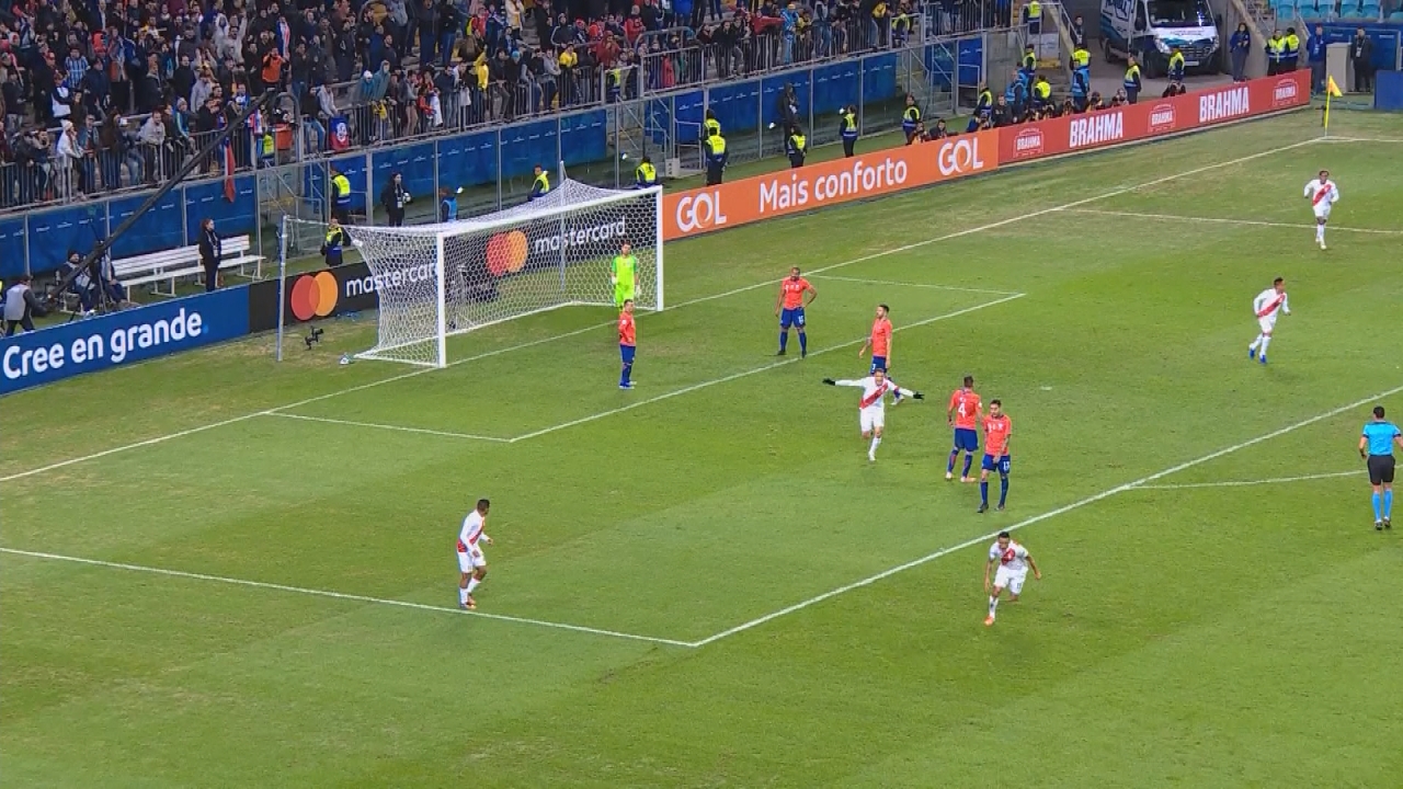 Ante la emergencia, Gabriel Arias salió disparado dejando el pórtico nacional desprotegido. Segundos más tarde Yoshimar Yotún paraba de pecho un centro para anotar el segundo gol de un partido que terminó 3-0 y con los liderados por Paolo Guerrero clasificados para la final de la Copa américa ante Brasil.
