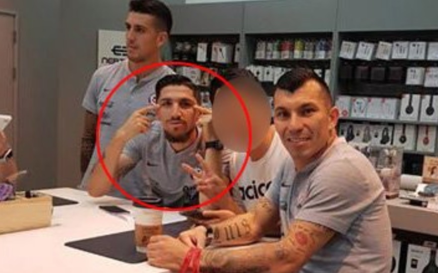 Se trata de una fotografía donde aparece Gary Medel, Enzo Roco y Diego Valdés, junto a un fanático coreano.