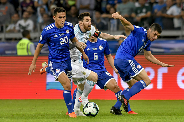 Sin embargo, el árbitro brasileño Wilton Sampaio fue a revisar la jugada al VAR y sancionó penal por una mano paraguaya en el remate de Martínez. A los 57' Lionel Messi anotó desde los doce pasos.