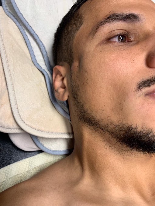 Primero, el libio de 27 años mostró la radiografía craneal que muestra una fractura en el sector derecho de su cabeza y luego compartió una fotografía en el que se le ve una parte hundida en el lado derecho del rostro.