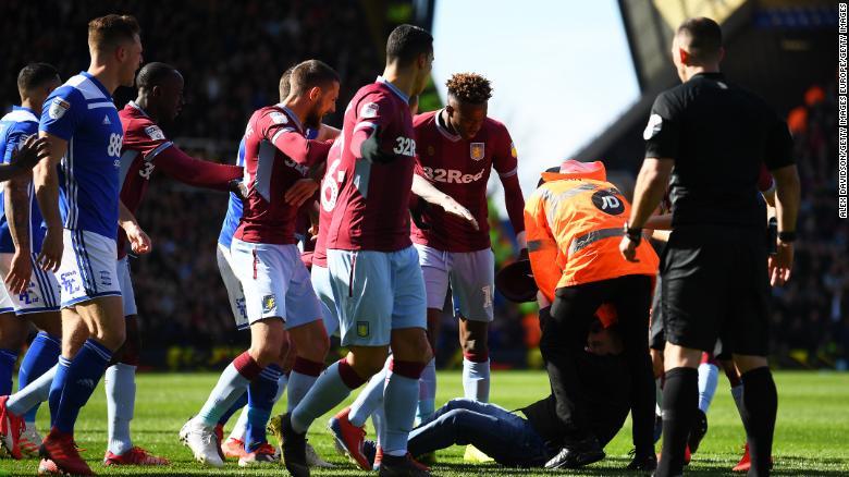 El perpetrador corrió desde las gradas en las que estaban los fanáticos de Birmingham antes de golpear al jugador de Aston Villa Jack Grealish en la cabeza por detrás.