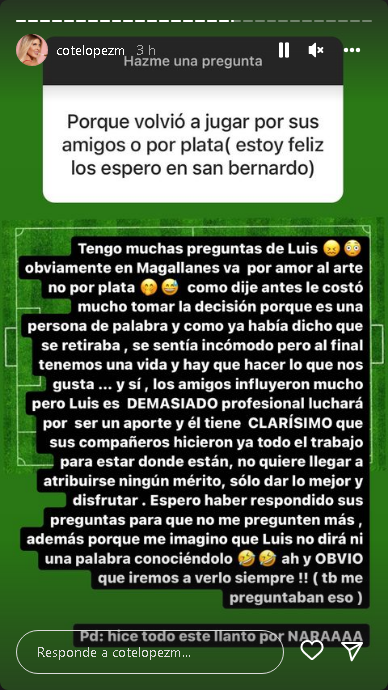 Ante la noticia, la empresaria y esposa del jugador, María José "Cote" López, decidió responder en Instagram las múltiples interrogantes.