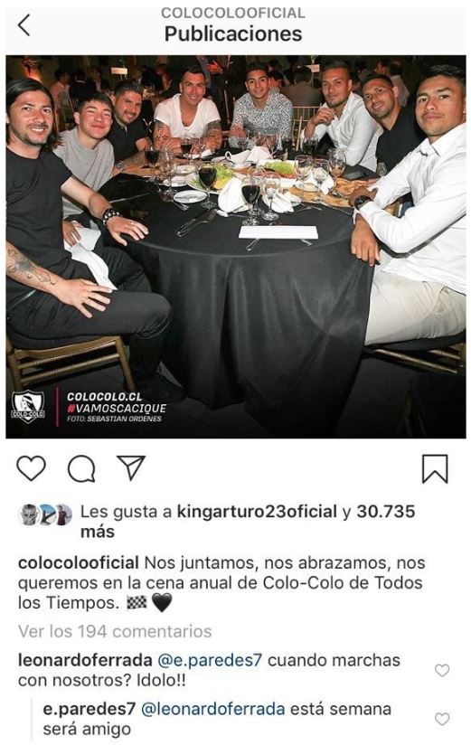 Luego de que la cuenta de la mencionada red social de Colo Colo compartiera una imagen de varios jugadores del club, donde destaca el atacante Albo, un usuario identificado como Leonardo Ferrada le preguntó al ariete "¿cuándo marchas con nosotros? Idolo".