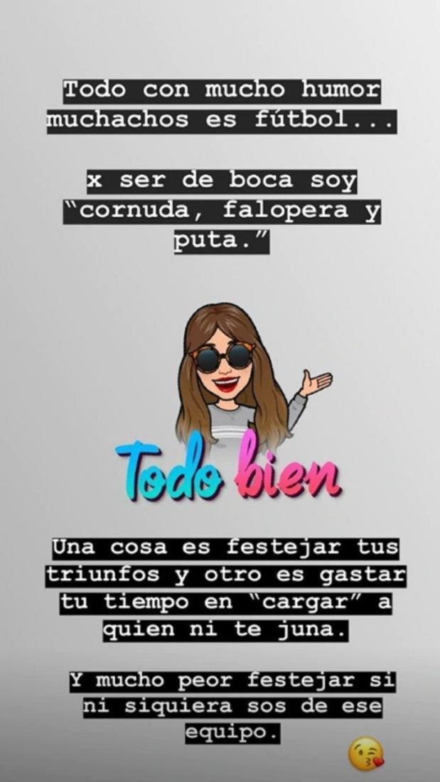 “Una cosa es festejar tus triunfos y otro es gastar tu tiempo en ‘cargar’ a quien ni te juna”, sentenció la argentina.