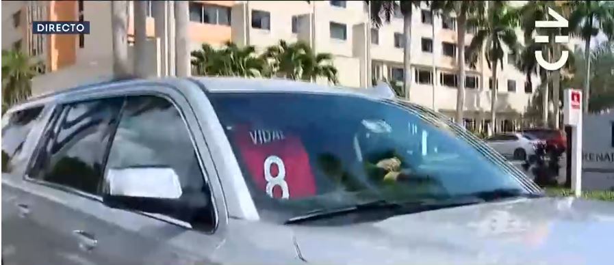 Sin embargo, a través del parabrisas del vehículo que abordó, mostró una camiseta de la selección, específicamente la número 8 de Arturo Vidal.