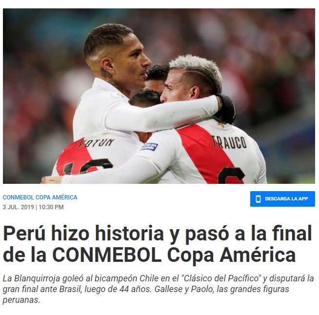 Y justamente son estos aspectos los que la prensa internacional también destaca de la segunda llave de semifinal de la Copa América 2019, tal como queda demostrado en los titulares que le dedicaron al duelo.