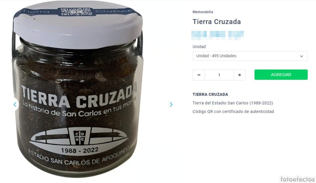 tierra con 34 años de antigüedad y pertenece al estadio San Carlos. Actualmente, quedan disponible