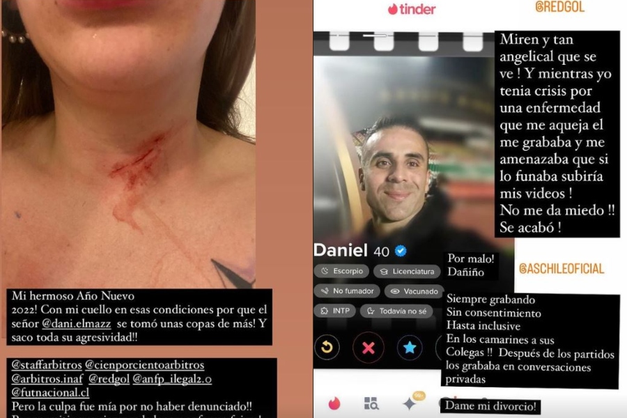 fotografías y escritos revelando el tormento que estaría pasando por los reiterados episodios de violencia física y psicológica por parte del juez de fútbol.