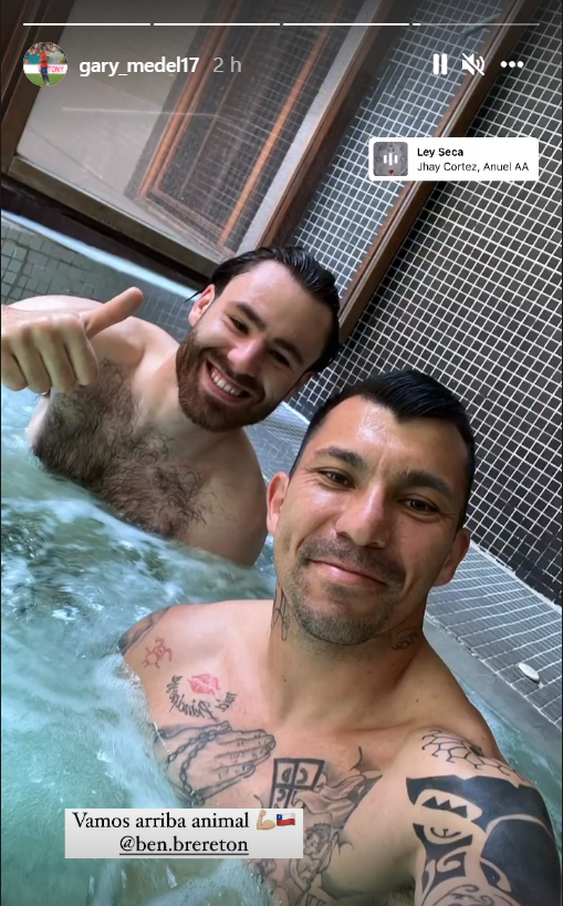 A través de su cuenta de Instagram, el Pitbull compartió imágenes junto al jugador del Blackburn Rovers, donde muestra lo relajados que estaban en la piscina del recinto donde se concentra el equipo chileno de cara al trascendental encuentro por las eliminatorias rumbo al mundial de Qatar.