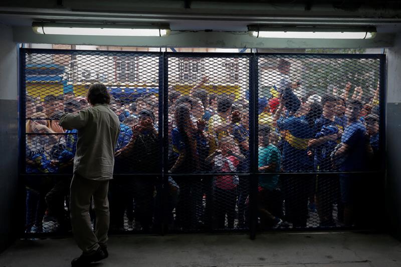 Con la posibilidad de gritar, cantar y alentar a sus ídolos, los hinchas 'xeneizes' realizaron largas filas y se dieron cita en las inmediaciones de la Bombonera desde bien temprano, y obligaron a los directivos a abrir las puertas del estadio una hora antes de lo previsto.