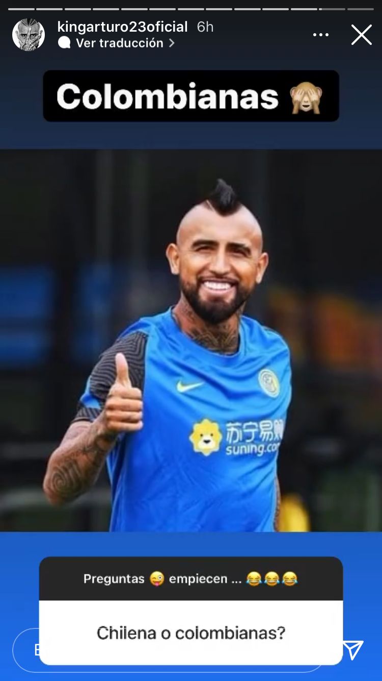 El volante del Inter de Milán dio a conocer la actualización de su estado sentimental a través de una dinámica de preguntas y respuestas en sus historias de Instagram, donde afirmó además que prefiere a las colombianas por sobre las chilenas.