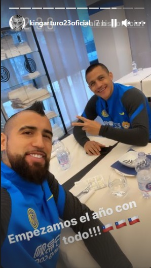 Además, el King publicó en sus historias una imagen junto a su compañero de equipo Alexis Sánchez temprano desayunando este 1 de enero en el centro de entrenamiento del cuadro lombardo.