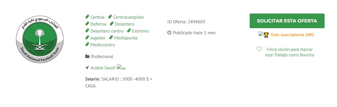 Se trata de la llamativa oferta laboral que publicó la Federación de Fútbol de Arabia Saudita, quienes están buscando jugadores para que