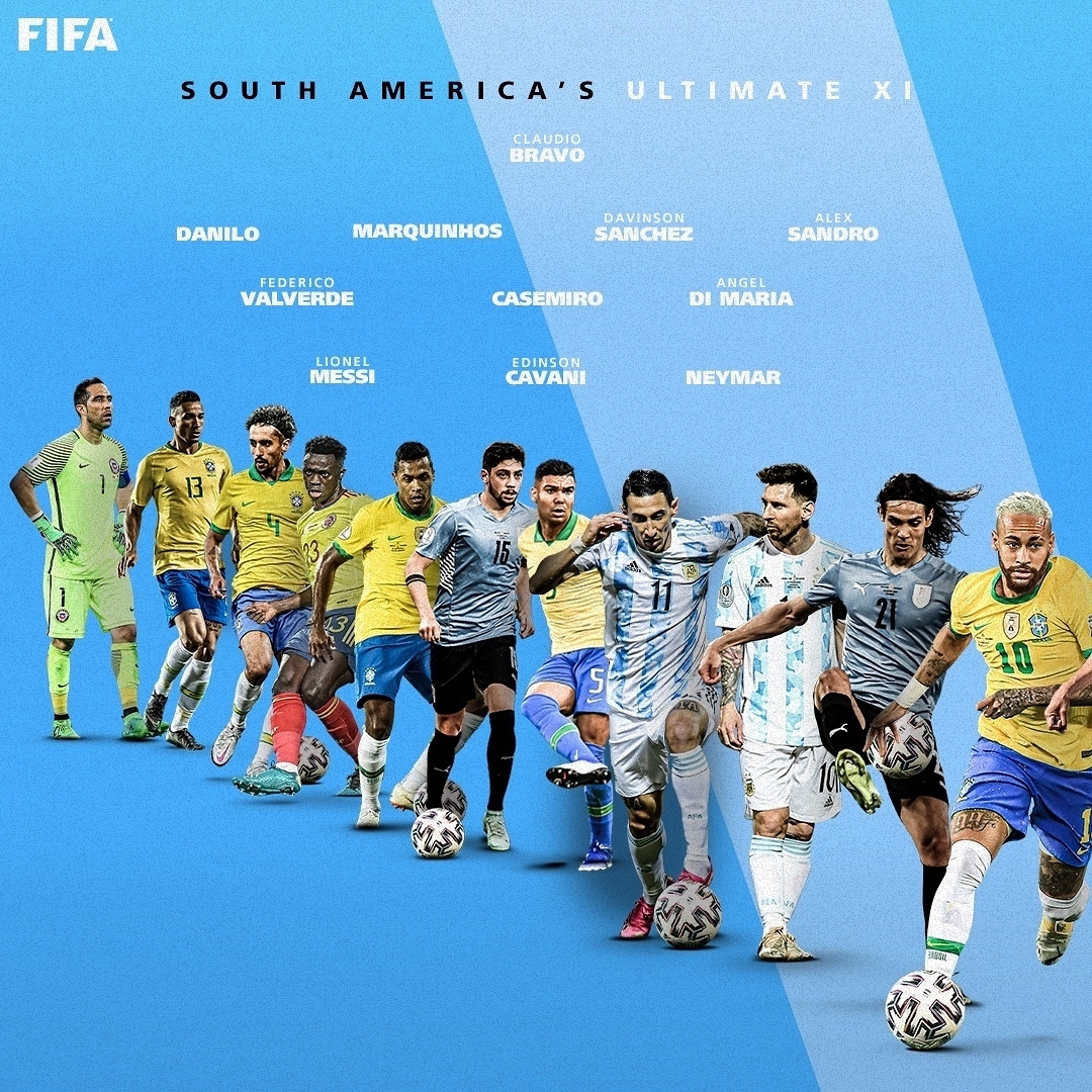 A días de las finales de la Copa América y de la Eurocopa que tendrán como protagonista a Brasil versus Argentina en Sudamérica y a Inglaterra contra Italia en el viejo continente, la FIFA elaboró un equipo ideal tipo “selección” con los mejores jugadores que participaron en cada torneo.