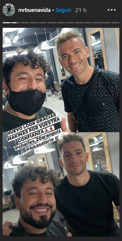Pero el oriundo de Puente Alto no fue solo a la peluquería en Alemania, ya que estuvo junto a su compañero Lucas Alario, quien también se hizo unos retoques en su cabello.