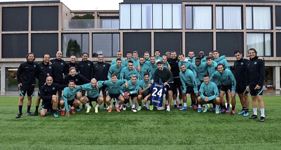 El futbolista, que fue revivido por los médicos de su selección en medio de la cancha, apareció para saludar a sus compañeros y al cuerpo técnico nuevo de los neroazzurros, comandado por Simone Inzaghi.
