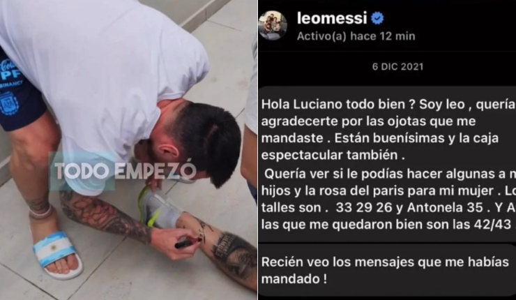 "Hola Luciano. ¿Todo bien? Soy Leo. Quería agradecerte por las ojotas (chalas) que me mandaste. Están buenísimas y la caja espectacular también", comenzó el ex Barcelona.