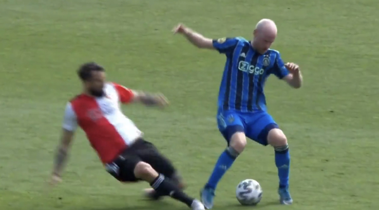 La jugada ocurrió en el duelo que terminaría en la derrota del Feyenoord ante el Ajax por 3 a 0, donde el formado en Boca fue a buscar una pelota al piso contra Davy Klaassen, pero lamentablemente su tobillo se trabó en la cancha y le produjo la escalofriante lesión.