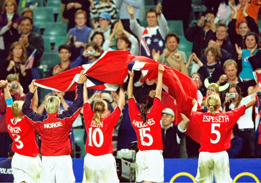 Estados Unidos y Noruega, los dos grandes del fútbol femenino en los años 80 y 90, llegaron a la final en el evento multidisciplinario de Sídney. Las norteamericanas que iban por su segunda medalla olímpica consecutiva igualaron 2-2 ante las escandinavas, lo que obligó al encuentro a definirse en el tiempo extra. En ese tiempo, existía la regla del gol de oro, lo que significó que al minuto 12 de la primera mitad, Dagny Mellgren superó a la portera Siri Mullnix, dando por finalizado el encuentro y dándole las medallas para las europeas.