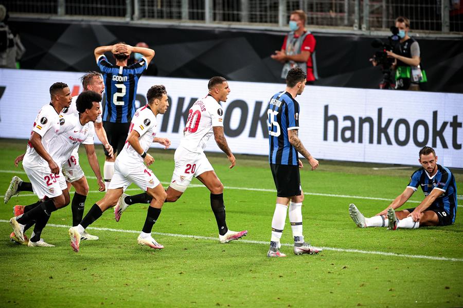 Lee también: Bayern Munich venció al Lyon y jugará contra el PSG para definir la ChampionsSevilla se apoderaba del balón y fue otra vez una pelota parada por derecha, lo que les dio la ventaja definitiva. Un centro que en primera instancia rechazó la defensa interista, quedó muy cerca del arco y con una pirueta de otro partido, conectó de chilena el defensa Diego Carlos, el mismo que había derribado a Lukaku, aunque esta vez con roles invertidos, porque el belga desvió levemente el balón que terminó en las mallas para establecer el 3-2 a los 74’.