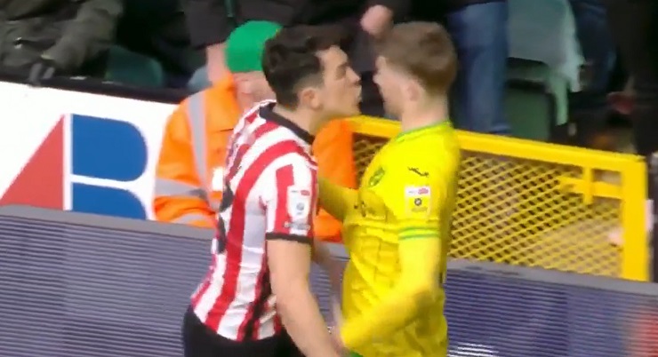Luke O’Nien quedó cara a cara con Jacob Sorensen, aunque estuvieron muy lejos de trenzarse a golpes o empujones.