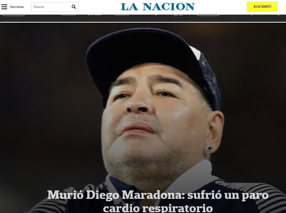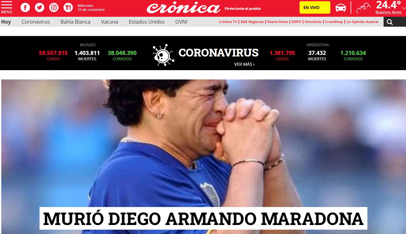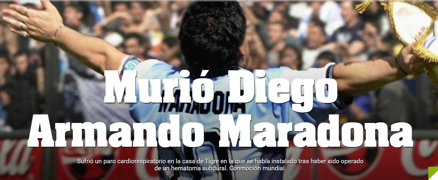 Mediante su transmisión televisiva, este último medio lanzó frases como “sin Diego, sin Dios” y “murió el gol”.