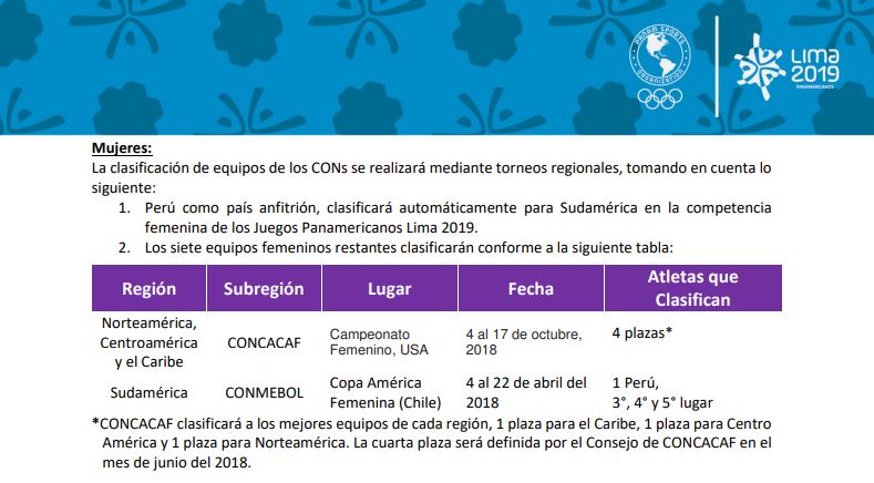 Lee también: Panamericanos 2019: Sigue todas las competencias vía streaming 24/7 por las plataformas digitales de CHVSin embargo, las bases lo establecen así.El primer y segundo lugar del campeonato continental van al Mundial y las que se ubicaron en el tercer, cuarto y quinto puesto, clasifican a los Panamericanos 2019.