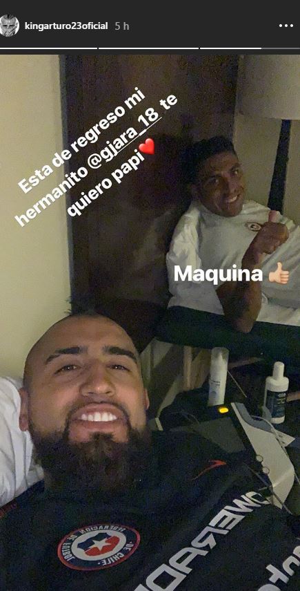 Este jueves se sumó a la concentración Arturo Vidal, quien aprovechó sus rede sociales para dedicarlo un cariñoso saludo a su compañero de habitación. “Está de regreso mi hermanito. Te quiero papi…Máquina”, escribió el Rey Arturo.