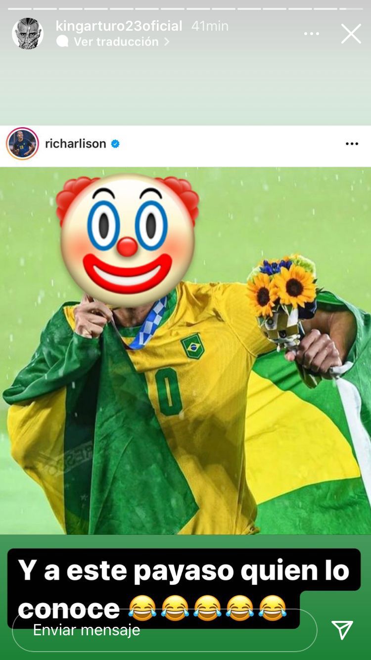 Tras la derrota por 0-1 de la Roja ante Brasil en las Clasificatorias rumbo al Mundial de Qatar 2022, el delantero del Everton inglés Richarlison se burló de Arturo Vidal en su cuenta de Instagram.