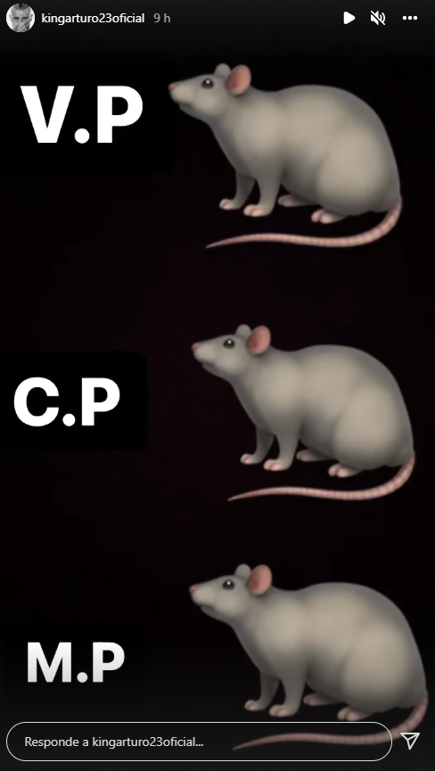 En este caso, compartió una historia en la que aparecen seis letras y tres emojis de ratones: V.P, C.P y M.P son las supuestas iniciales que surgen como incógnita.