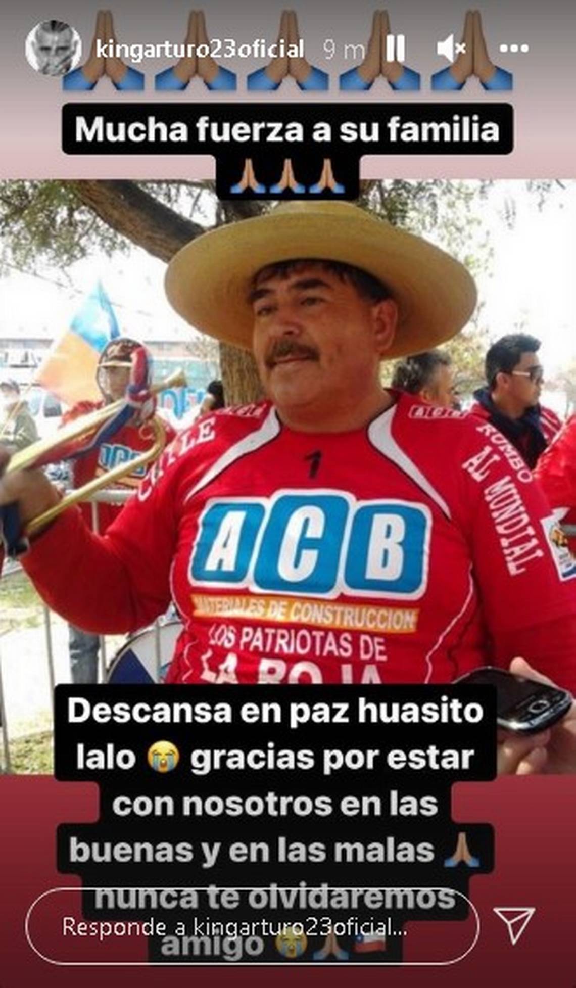 "Descansa en paz Huasito Lalo. Gracias por estar con nosotros en las buenas y en las malas. Nunca te olvidaremos amigo", manifestó el volante en sus historias.