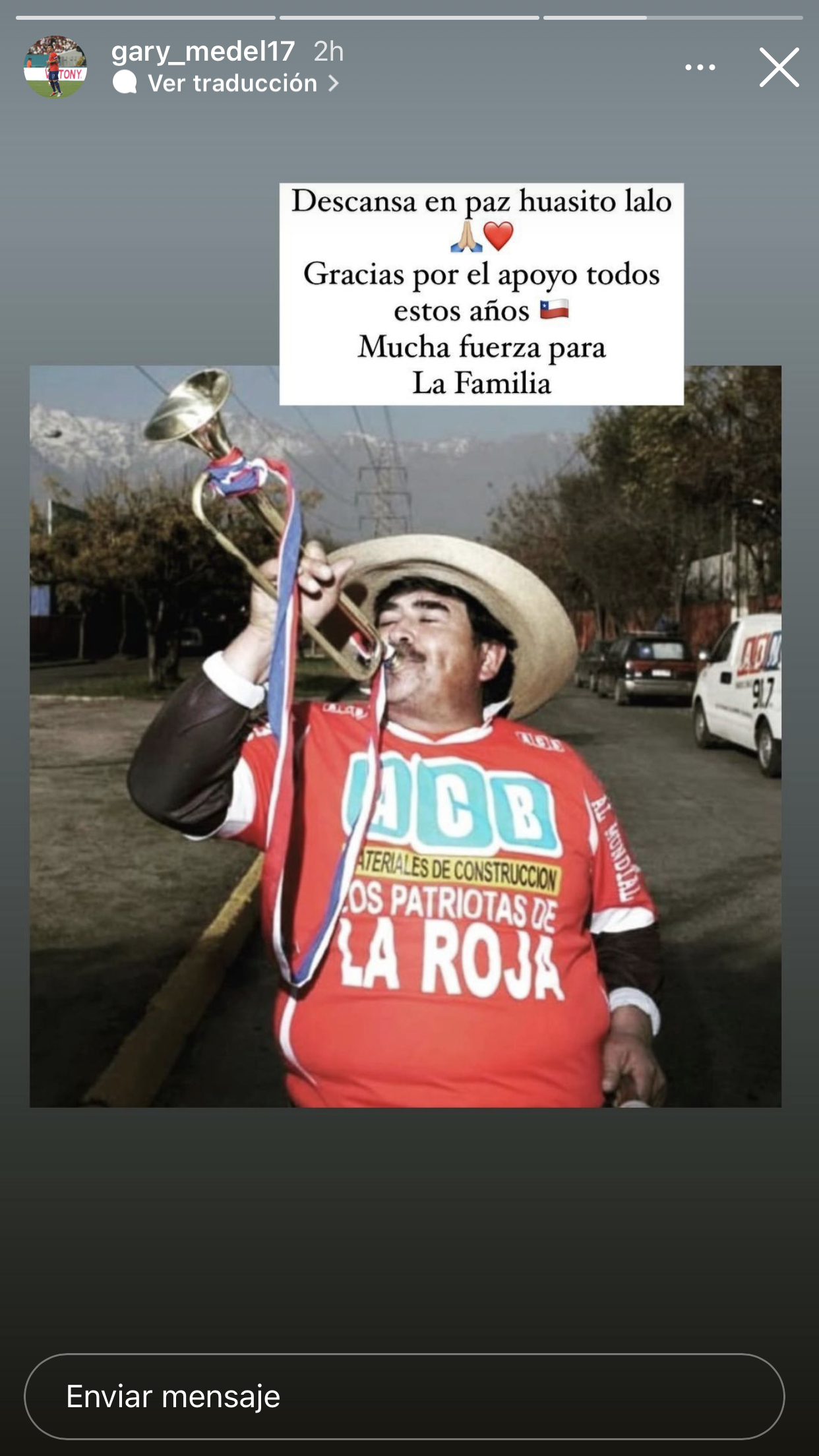En tanto, Gary Medel también se sumó a las condolencias por el fallecimiento del popular hincha. "Gracias por el apoyo todos estos años. Mucha fuerza para la familia", expresó el futbolista del Bolonia a través de la misma red social.