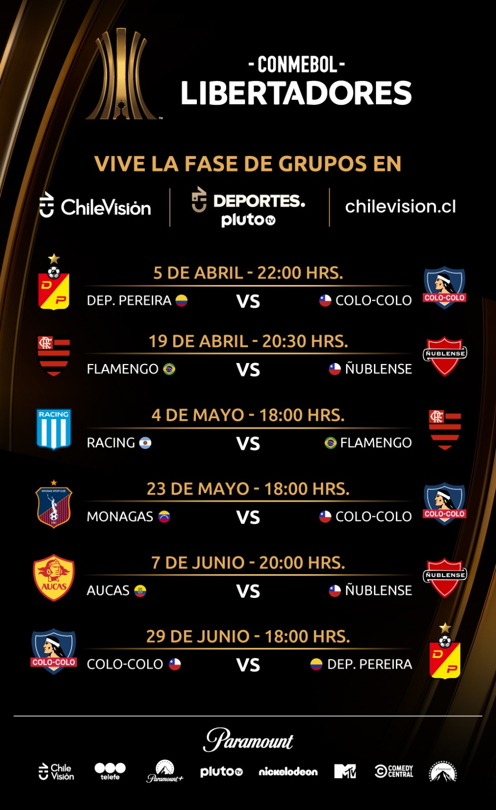 El canal de Paramount confirmó que transmitirá por señal abierta los encuentros que disputen Colo Colo y Ñublense, además del choque entre Racing y Flamengo. ¿Cuándo y por dónde se podrán ver? Acá te contamos.
