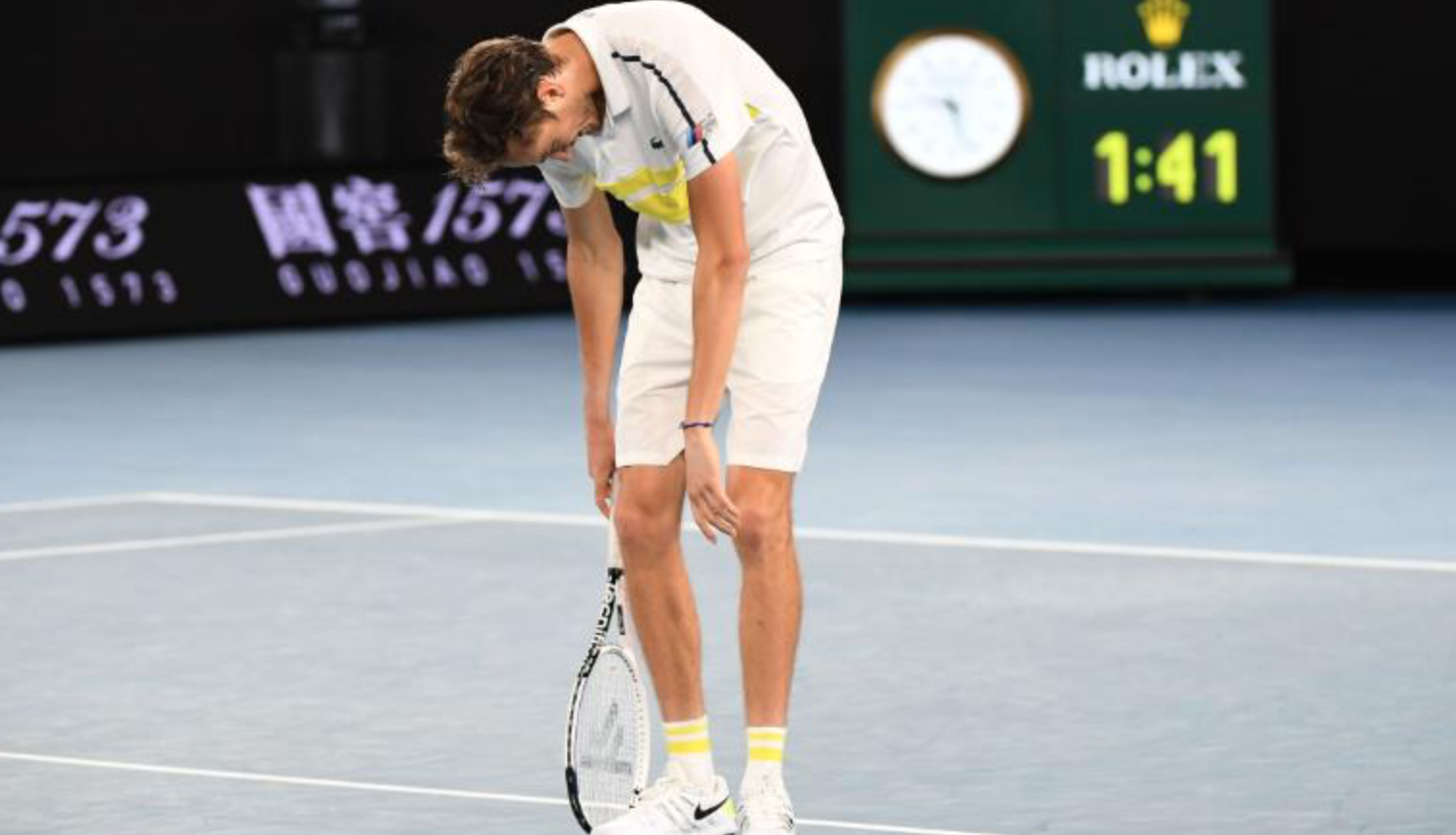Parecía haber muy poco que el número 4 del mundo pudiera hacer para prevenir la embestida y la raqueta de Medvedev llevó la peor parte de su frustración cuando la aplastó contra el piso de la arena de Rod Laver.